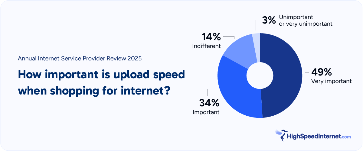 Almost everything we do online uses primarily download bandwidth, aside from a few activities like cloud backups and large file uploads. We prefaced our question with this important consideration, and still, customers were fiercely adamant that high upload speed was an important element of their service.
